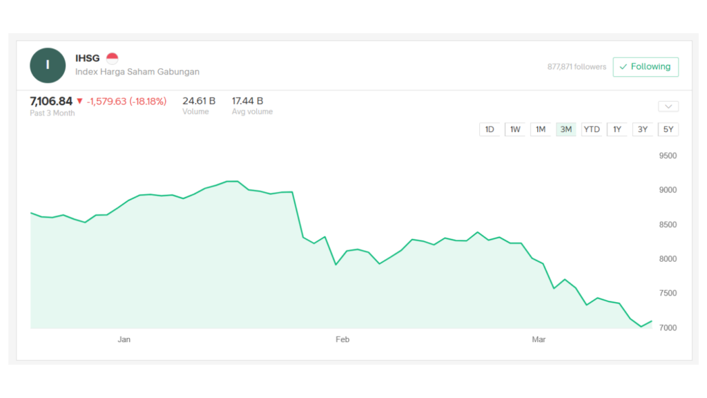 Penurunan IHSG terjadi akibat kombinasi berbagai sentimen negatif, baik dari dalam maupun luar negeri. Dari sisi global, ketidakpastian terkait perubahan metodologi MSCI memicu arus keluar dana asing karena investor menyesuaikan portofolionya makanya tidak heran jika rupiah sampai menyentuh 17 ribu rupiah. Di saat yang sama, konflik geopolitik di Timur Tengah meningkatkan kekhawatiran terhadap pasokan energi, mendorong kenaikan harga minyak dan menekan pasar saham secara global.